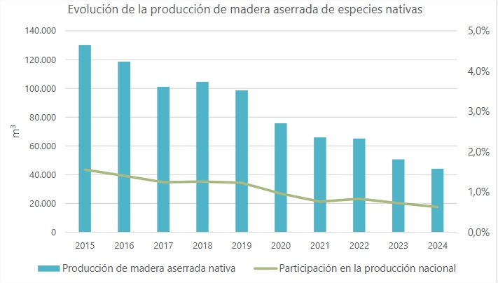 Madera aserrada del bosque nativo representa el 0,6% del total producido a nivel nacional