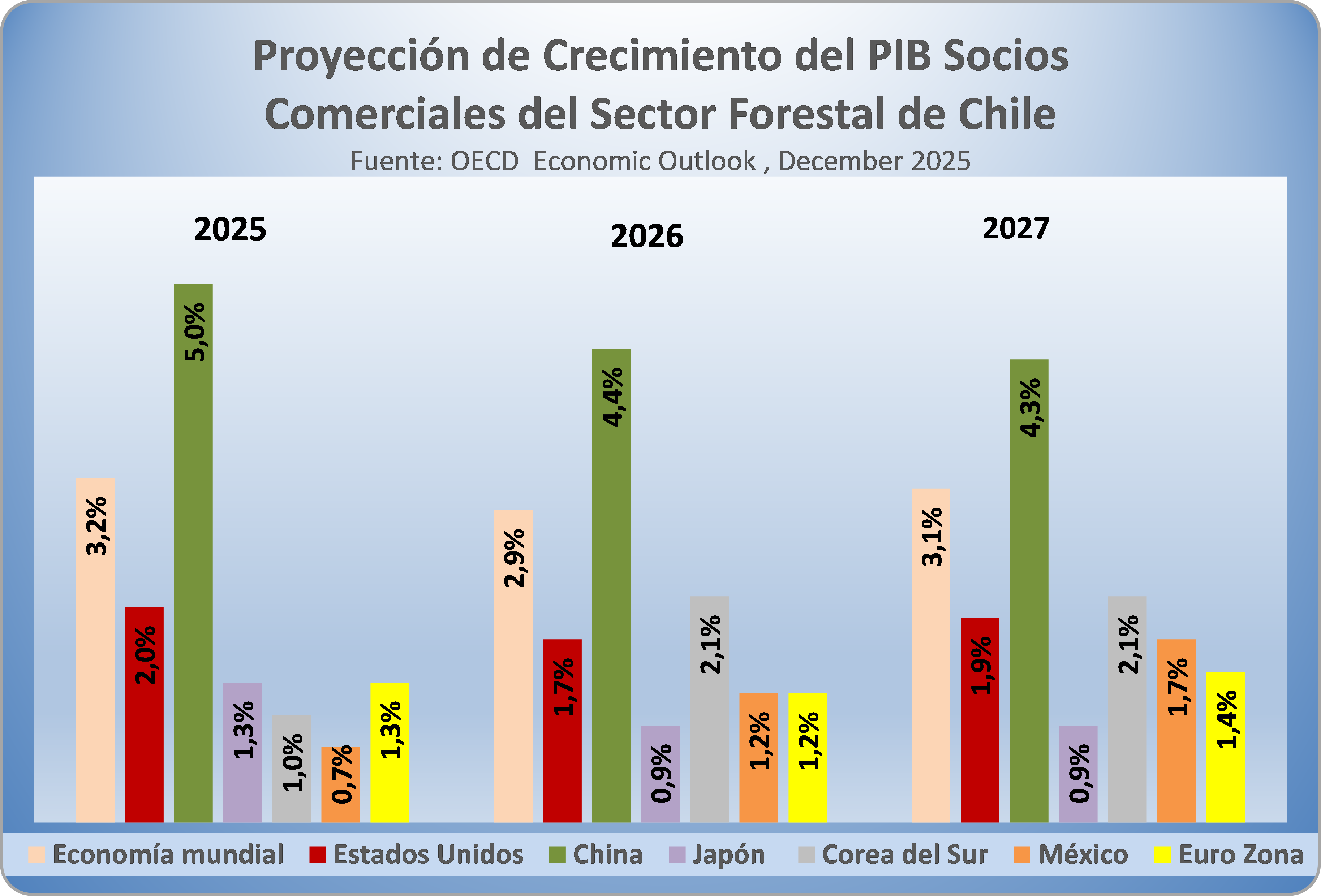 Proyecciones de crecimiento del PIB para socios comerciales del sector forestal